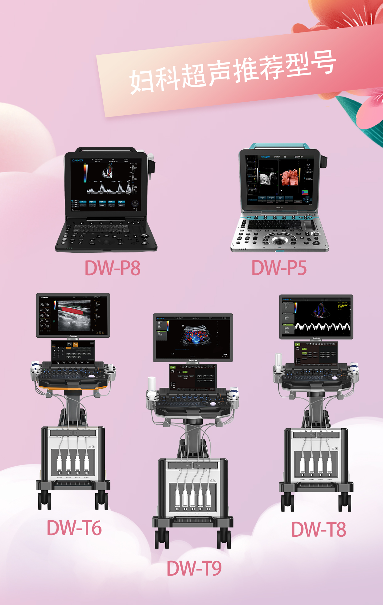臺式彩超 便攜彩超 黑白B超 可視人流診療系統 心電圖機/監護儀 醫用X光機